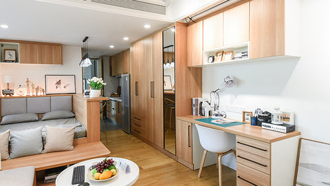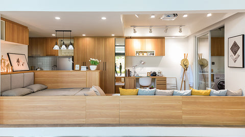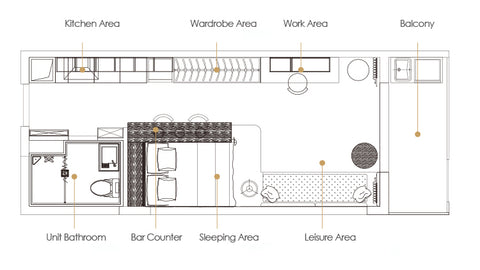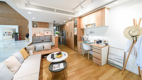 Bravat incorporates three major concepts into the overall design, including storage with woodwork, unit bathroom and a smart household. In addition, key parts of kitchen and bathroom have also been integrated into this simulated apartment of 33.9 square meters. That’s how we synthesize utility with aesthetics.